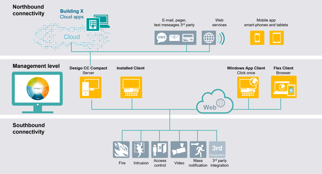 Desigo CC Compact se puede instalar en una sola computadora estándar o en un PC de hardware integrado, con funcionalidad completa de servidor y cliente.
