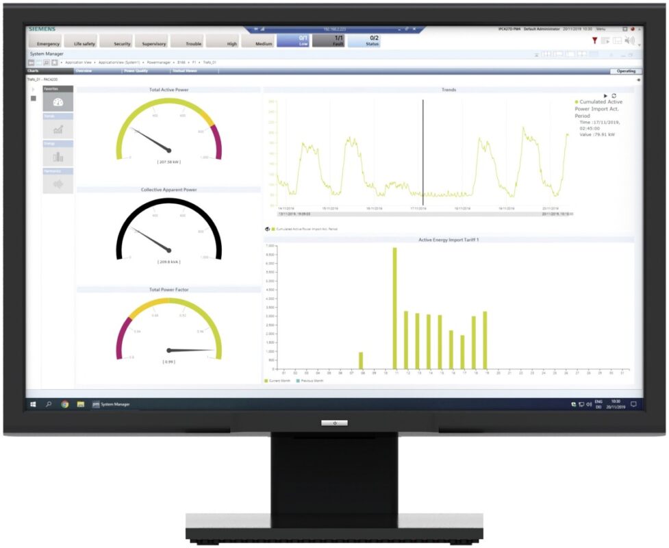 Uno de estos desarrollos es la integración de medidores de energía al sistema BMS SIEMENS APOGEE, utilizando el software DESIGO CC para la supervisión, adquisición de datos y generación de reportes.